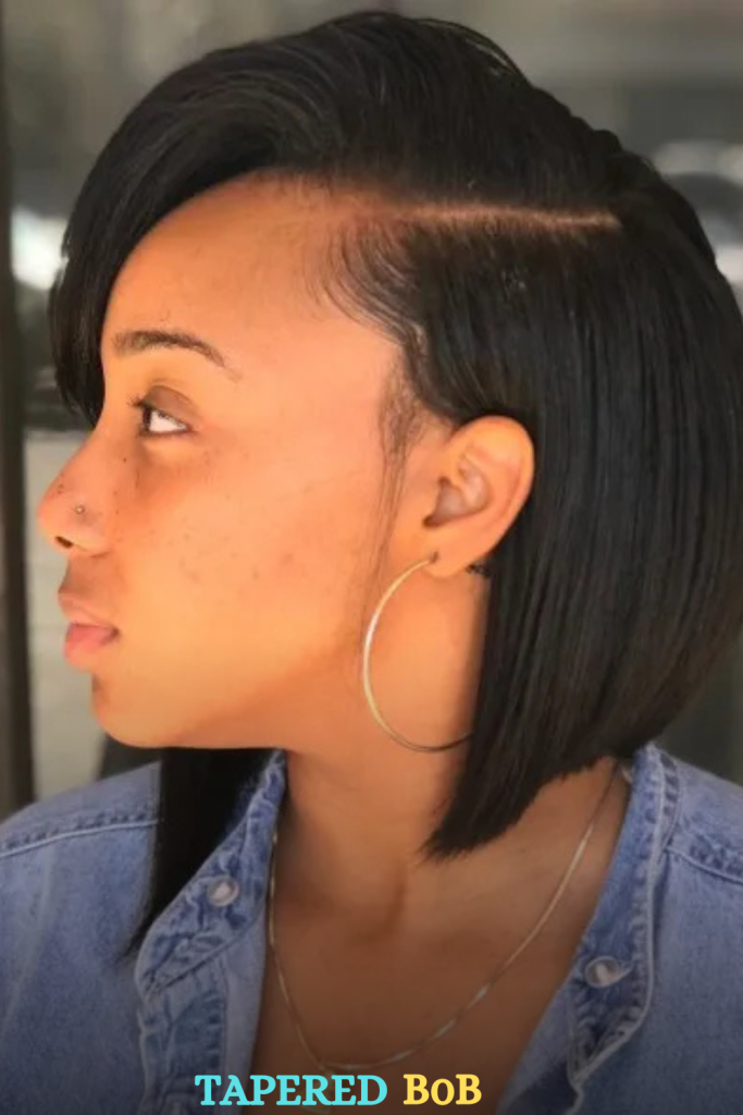 Tapered bobs feature shorter hair at the back and gradually longer strands at the front. This variation is similar to an asymmetrical bob but with a smoother gradient. It’s a sophisticated, elegant choice for women who want a professional yet fashionable cut.