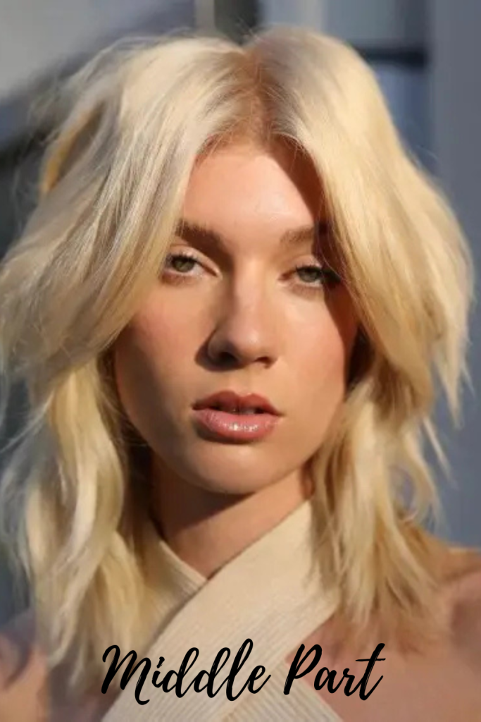 The middle part has made a big comeback, and it looks especially trendy with collarbone-length cuts. It gives off a clean, symmetrical look and works well for balancing rounder face shapes. Add volume at the roots for an elevated twist.