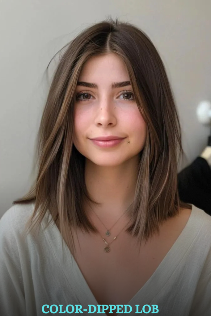 Add personality to your lob with dipped ends in a contrasting or vibrant color. This bold style is perfect for those who love experimenting with hair color while maintaining an easy-to-grow-out base.